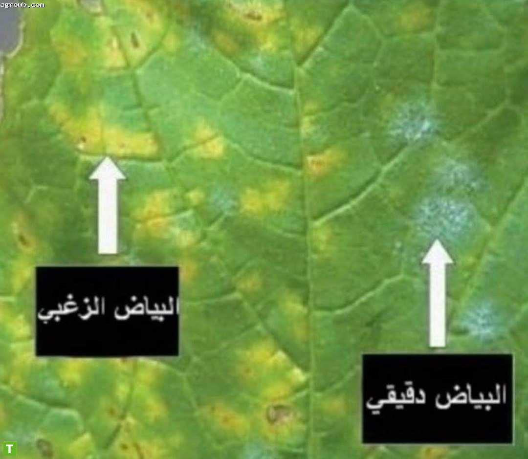مسحوق أبيض دقيقي على جميع الأجزاء المصابة (أوراق - أزهار – ثمار).