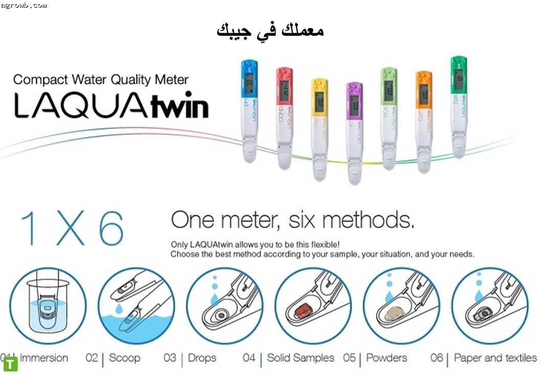 تضمن لك أجهزة (Laquatwin) المنتجة من شركة هوريبا اليابانية الكفاءة العالية في القياس ودقة النتائج وبساطة التشغيل كما أن أهم مايميز هذه الأجهزة هي مقدرتها على العمل في بيئات مختلفة سواء كانت في النبات او التربة او المياه فمثلا جهاز قياس عنصر النيتروجين يمكنك استخدامه لمعرفة نسبة النتيروجين في مياه الرى بالإضافة لاستخدامه في قياس نسبة النيتروجين في التربة علاوة على ذلك يمكنك استخدام نفس الجهاز لقياس نسبة النيتروجين في النبات نفسة وهذة الأجهزة بسيطة وصغيرة الحجم وبالتالى تحقق بالفعل شعار (معملك في جيبك) كما انك يمكن استخدام هذه الأجهزة لقياس جودة الطعام ونسب العناصر فيه وكل ذلك بفضل الطرق المتعدده التي يوفرها الجهاز للقياس فهناك 6 طرق مختلفه يمكن القياس بها ولذلك فهى تناسب البيئات المختلفه حولنا من مياه لتربة لمحاصيل وطعام